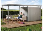 Plechový záhradný domček Biohort HighLine H1 jednokrídlové dvere, strieborný metalický