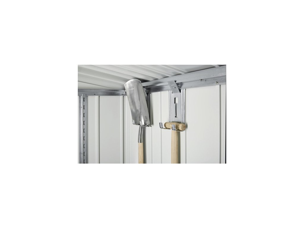 • 4 držiaky zahradného náradia (na zavesenie lopát, hrablí, hadíc apod.)