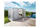Plechový záhradný domček Biohort HighLine H2 jednokrídlové dvere, strieborný metalický